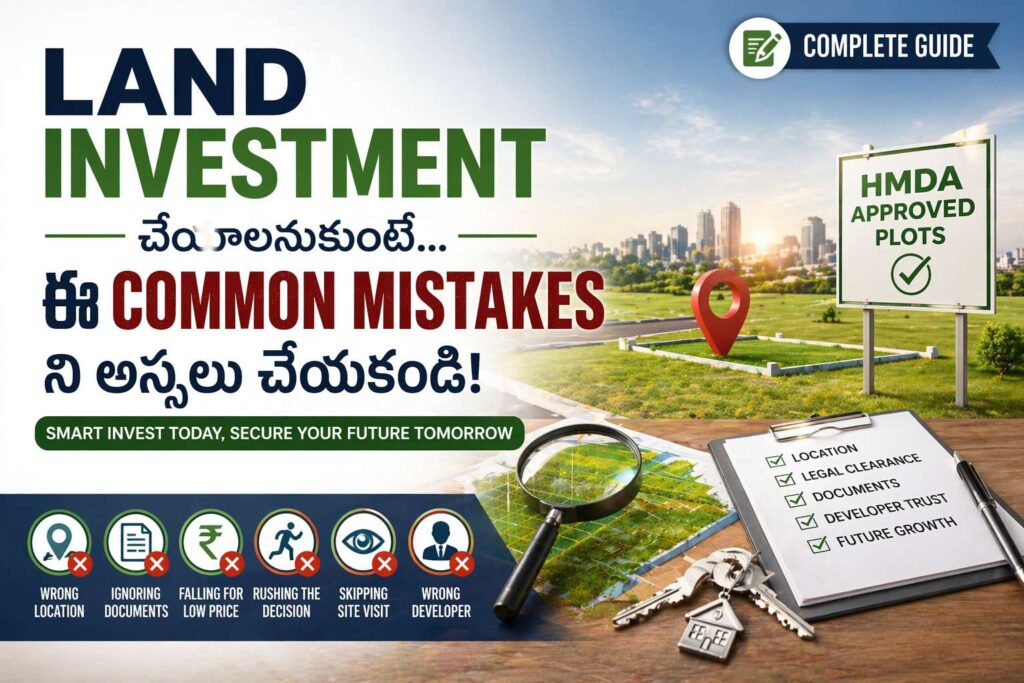 భూమి (Land) పెట్టుబడి అనేది చాలా మందికి “సేఫ్ & బెస్ట్ ఇన్వెస్ట్మెంట్”గా కనిపిస్తుంది. నిజమే—సరిగ్గా ప్లాన్ చేసి, సరైన ప్రదేశంలో కొనుగోలు చేస్తే భూమి విలువ కాలక్రమంలో గణనీయంగా పెరుగుతుంది. కానీ చాలా మంది చిన్న చిన్న తప్పులు చేసి, మంచి అవకాశాన్ని కోల్పోతున్నారు లేదా నష్టపోతున్నారు.
